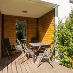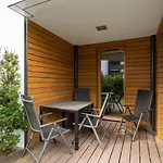 A Bursztynowa - Garden apartman autóval 30 percre van a Lech Wałęsa repülőtértől. A vendégeket pihenésre invitálják a teraszra.